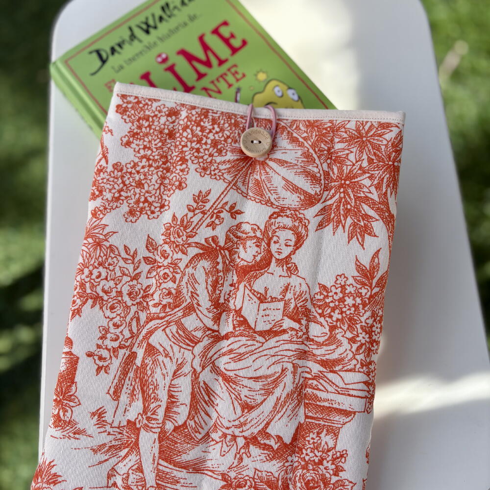 🧡 Funda para libro artesanal – Estilo romántico naranja “toile de Jouy” 📙✨ Lleva tus lecturas con elegancia y protege tus libros con esta hermosa funda acolchada hecha a mano, con un diseño clásico que enamora. Perfecta para lectoras que aman los detalles vintage y el encanto artesanal. 🌿 Características: Hecha a mano con tela de algodón de alta calidad Estampado clásico “toile de Jouy” en tono naranja. Interior acolchado que protege tu libro, tablet o cuaderno. Cierre con botón de madera y elástico resistente. Ideal para libros de tamaño medio (consultar medidas) 🎁 Perfecta para regalar a amantes de la lectura, profesoras, estudiantes o soñadoras empedernidas. Cada funda es única, confeccionada con cuidado y amor 🧡