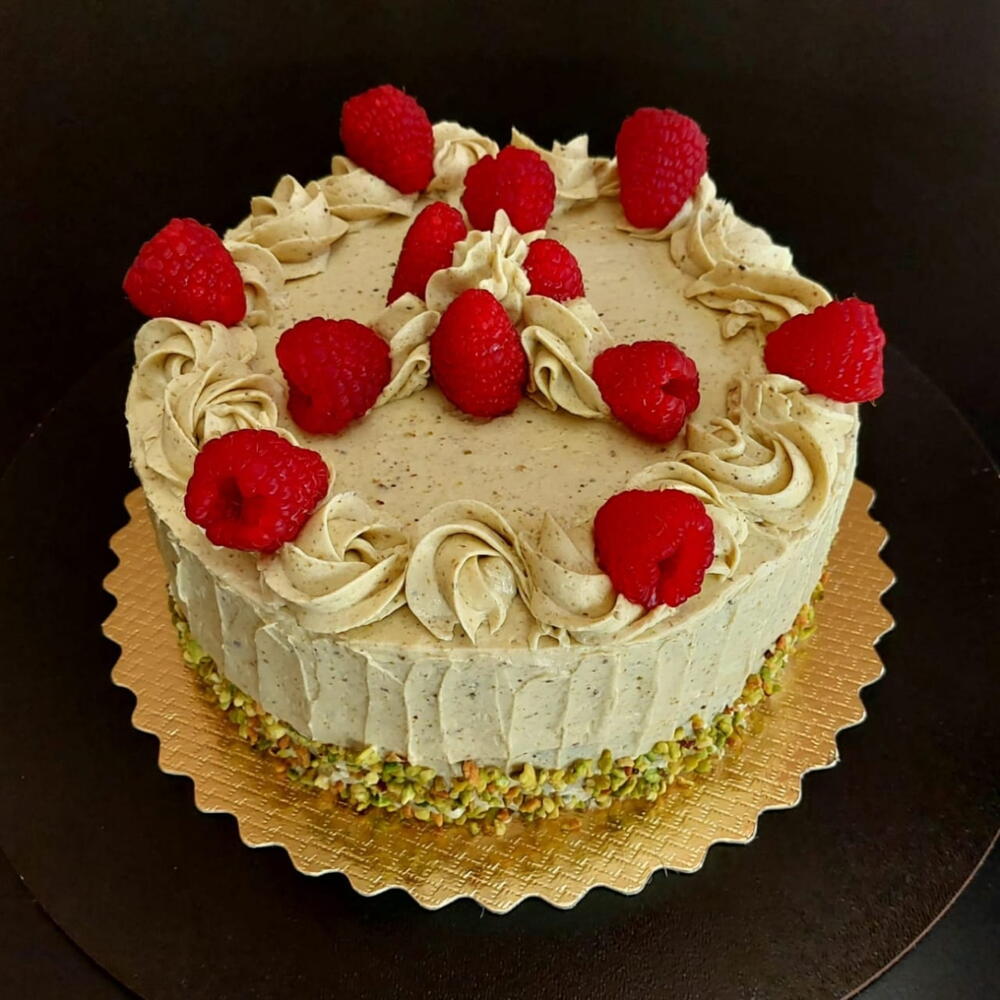 Deléitese con nuestras deliciosas tartas. Elaboradas con harina premium, azúcar, rica mantequilla, huevos frescos, leche pura y una pizca de levadura y sal. Pero lo que realmente las hace destacar son los pistachos sabrosamente incorporados en la receta, convirtiéndolas en un verdadero deleite para su paladar. Experimenta el sabor y la calidad inigualables en cada bocado.