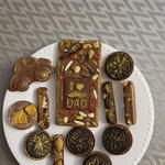"¡Hecho con todo el amor del mundo para mi héroe favorito! 💛🔧 Esta tableta de chocolate artesanal con 'I ❤️ DAD' y su bigote dorado, rodeada de herramientas, tuercas y frutos secos que tanto le gustan… porque papá siempre está arreglando todo, ¡hasta nuestros días! Y para completar el detalle: bombones con formas de coche clásico 🚗, barritas crujientes con Oreo , y más sorpresas llenas de sabor y cariño. Porque un papá como el mío merece lo mejor, no solo en su día ,sino siempre.