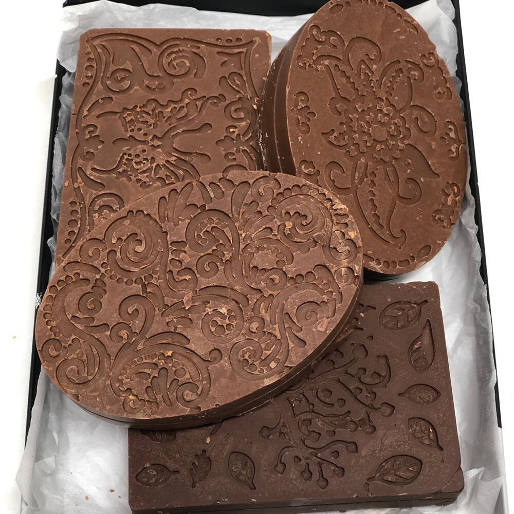 Manteca de cacao, pasta de cacao, azúcar, leche en polvo, vainilla, lecitina de soja, mantequilla, crema de pistacho, crema de almendras, pasta tostada.