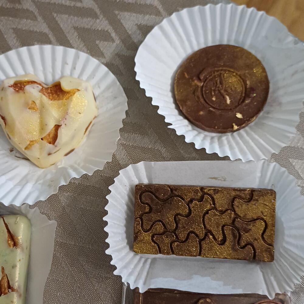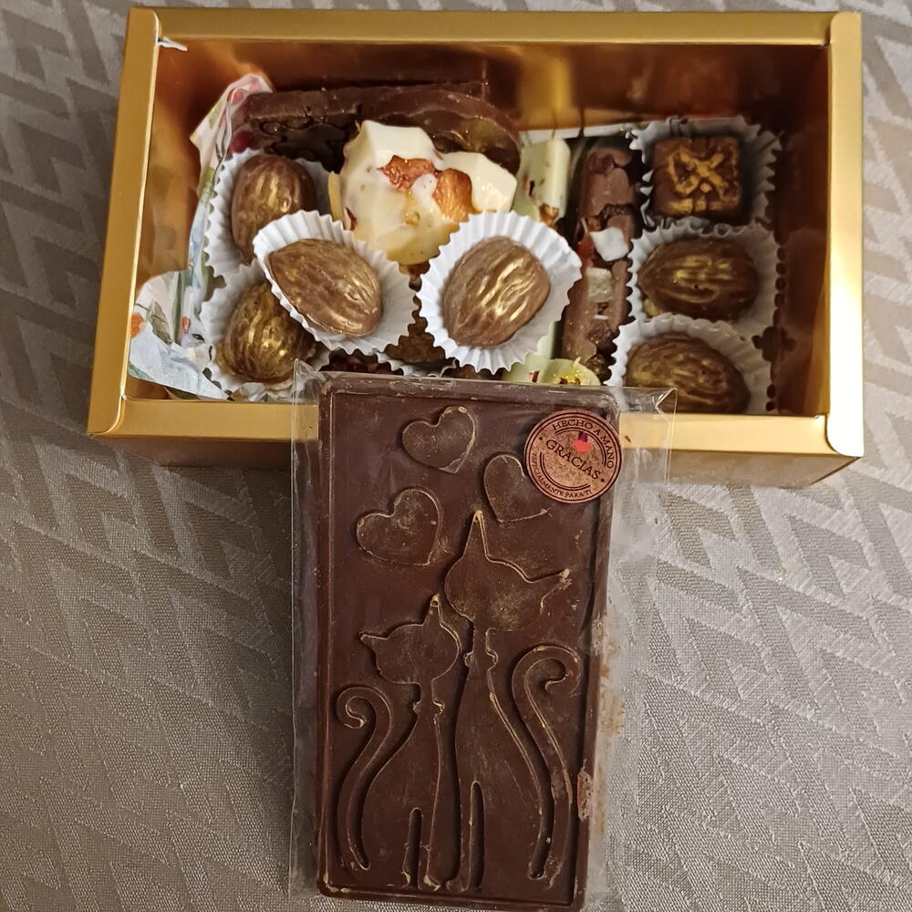 🌸✨ Edición especial Semana Santa ✨🌸 Celebra Semana Santa con una elegante caja de chocolates artesanales creada para homenajear la fuerza, la belleza y la inspiración de cada mujer. Esta selección incluye: 🍫 Tableta de chocolate decorada con delicado diseño artístico. 🤎 Bombones rellenos de frutos secos. 🤍 Corazones y piezas en chocolate blanco y con leche. 🌰 Especialidades con nueces y almendras. ✨ Detalles dorados que aportan un toque sofisticado. Elaborados con chocolate de alta calidad y preparados con cariño, perfectos para regalar a una mujer especial en su día
