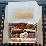 Caja de surtidos de dulces y una tableta de chocolate con dibujos de gatos enamorados