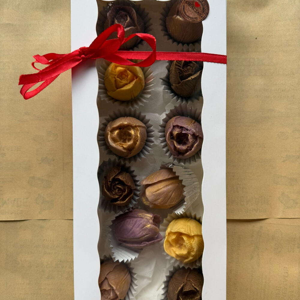 Elegante caja regalo con 12 delicadas rosas de chocolate artesanal, elaboradas a mano con ingredientes seleccionados de alta calidad. Un detalle sofisticado y lleno de significado para celebrar el Día Internacional de la Mujer. Cada rosa está cuidadosamente moldeada, combinando una estética floral realista con un sabor irresistible. La selección incluye diferentes sabores como chocolate con leche, chocolate negro, vainilla y notas afrutadas, creando una experiencia única en cada bocado. 🎁 Perfecta para regalar a mamá, amiga, hermana, compañera de trabajo o cualquier mujer especial en su día.