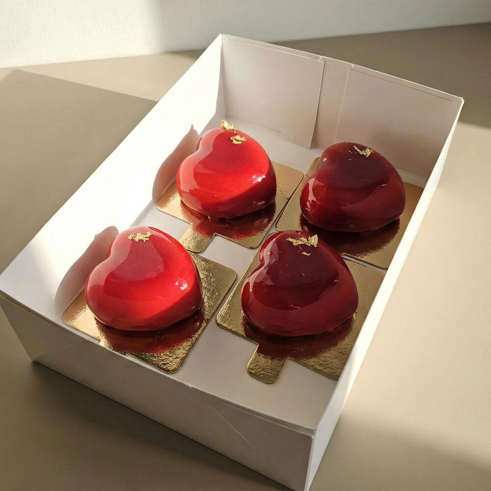 Caja Gourmet de Corazones Rojos con Glaseado Espejo – Postres Individuales Artesanales