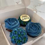 Delicada y elegante, nuestra Caja Pétalos incluye 4 cupcakes florales con diseño premium, decorados con flores altamente detalladas que parecen pequeñas obras de arte comestible. • Diseño: Rosette azul y hortensias azul con verde • Sabor: Bizcocho de vainilla o Chocolate. • Decoración: Hecha a mano con buttercream (crema de mantequilla) cremosa. • Relleno: Se puede incluir relleno de dulce de leche, nutella o crema de pistacho.