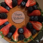 Chocoflan sweet round de fresa arandanos y frambuesas