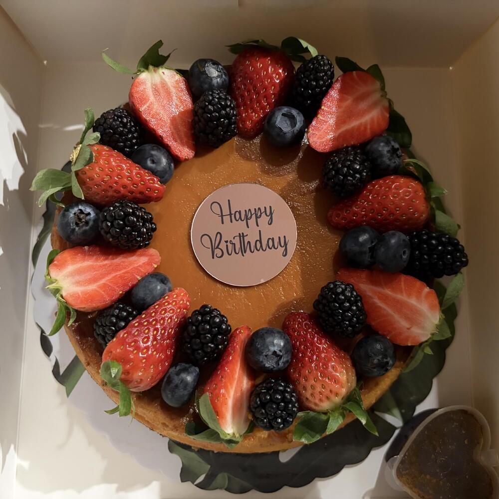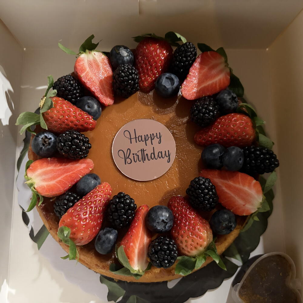 La combinación perfecta entre lo esponjoso del bizcocho de chocolate y la suavidad irresistible del flan, coronado con fresas, moras y arándanos frescos que le dan ese toque elegante y especial