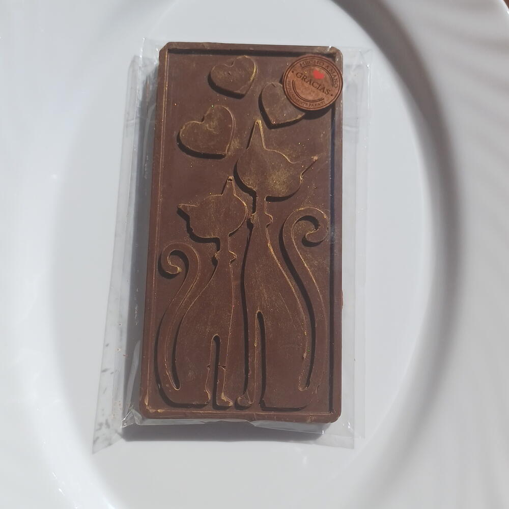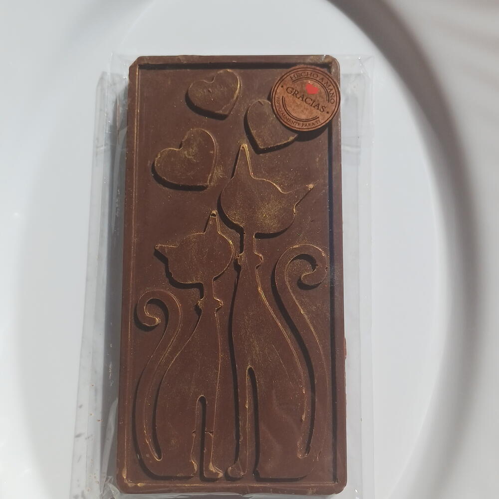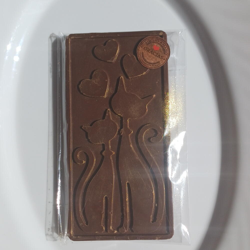 Deliciosa tableta de chocolate artesanal elaborada con chocolate belga de alta calidad, cuidadosamente moldeada con un encantador diseño de gatitos. Su textura suave y sabor intenso la convierten en un detalle perfecto para regalar o disfrutar en cualquier momento.