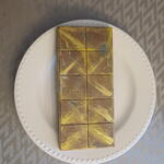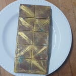 Chocolate con leche belga Crema de pistacho Kadaif (un tipo de masa fina, crujiente, típica de dulces árabes) Galletas