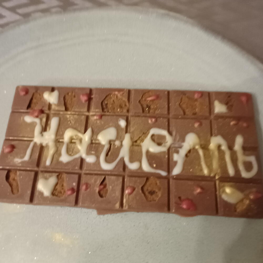 Super ricos los chocolates pero me tiró mucho para atrás la tarjeta de felicitación…son unos chocolates que le compré a mi novio y que esté dentro la tarjeta escrita en papel de cuaderno y con tu número de teléfono y nombre detrás es unos chocolates poco raro…se hubiera podido pensar que son de parte de otra chica 😅😂