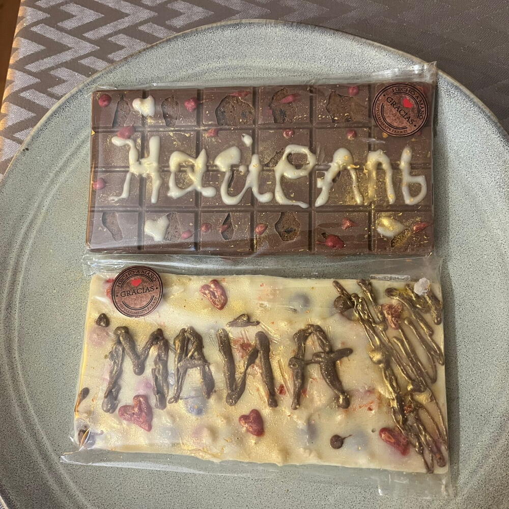 🍫 Chocolates Personalizados Kaaly Artesanía, sabor y un detalle único hecho para ti Nuestros chocolates personalizados Kaaly están elaborados de forma artesanal, uno a uno, con chocolate de alta calidad y acabados elegantes. Cada pieza se personaliza con nombres, palabras o mensajes especiales, convirtiéndolos en el regalo perfecto para cualquier ocasión. ✨ Ideales para: cumpleaños, San Valentín, aniversarios, bautizos, comuniones, eventos o detalles corporativos. 🍫 Tipos de chocolate Chocolate con leche Chocolate blanco Chocolate negro (opcional)