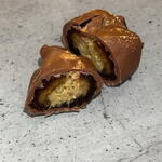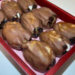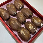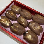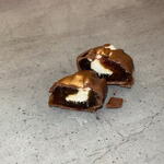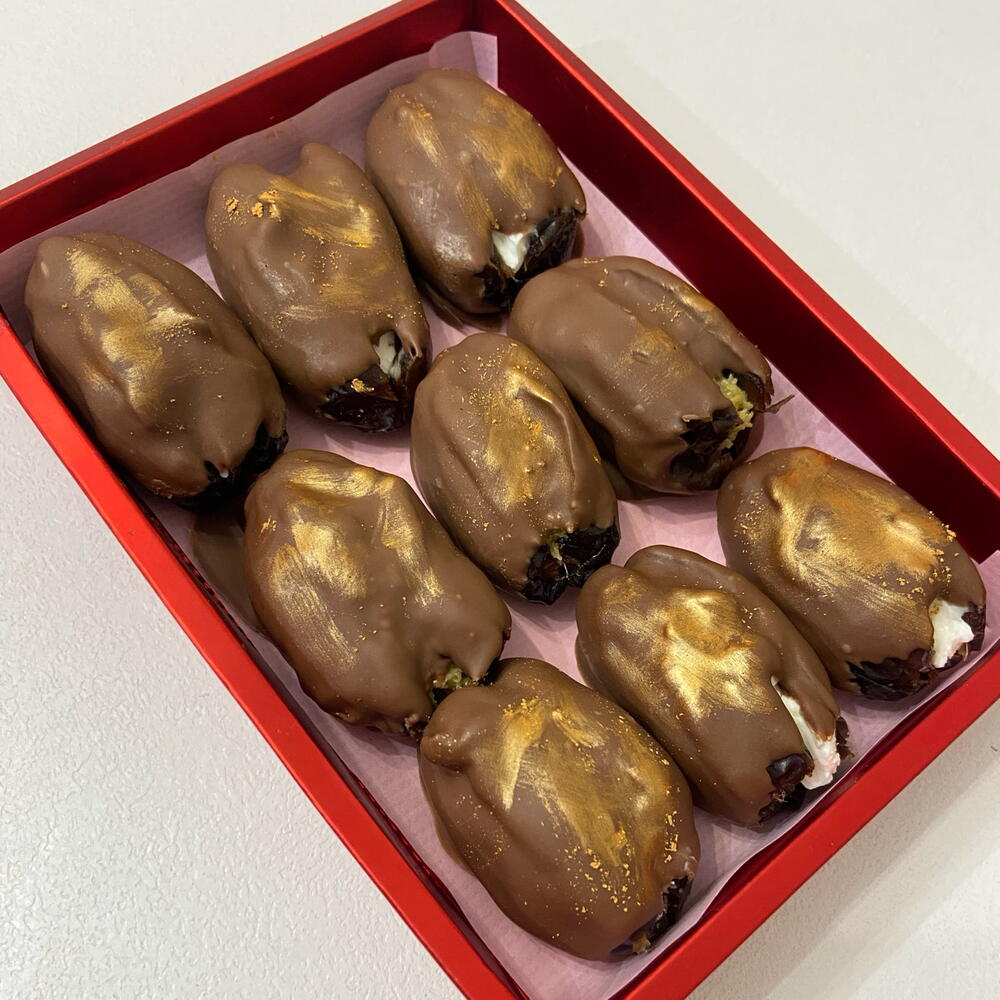 Dátiles cubiertos de chocolate con relleno de mousse de queso, así como con relleno de chocolate de Dubai.