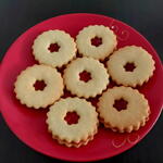 Deliciosas galletas de mantequilla con un maravilloso olor de mantequilla ,de limón y de vainilla,doradas y crujientes. La marmelada de frambuesas realza la dulzura de la galleta. Ideales para merendar Sumérgete en la infancia con un bocado. Atrévete ya!