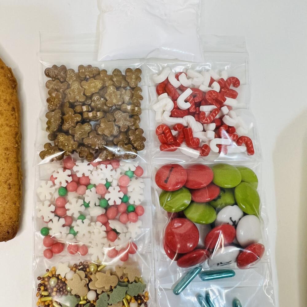? Kit de Casa de Jengibre - Crea tu propia magia navideña ? Este completo kit contiene todo lo que necesitas para armar y decorar una deliciosa casa de jengibre: ? Estructura en galletas de jengibre lista para ensamblar. ? Grageas de diferentes formas y colores para decorar a tu gusto. ✨ Pegamento comestible para mantener todo en su lugar. ❄️ Azúcar glas para simular la nieve y darle el toque navideño perfecto. ???? Ideal para compartir con familia o amigos y crear momentos dulces y memorables. ? Un regalo perfecto o una actividad divertida para esta temporada. ¡Haz que tu Navidad sea deliciosa y creativa! Contiene harina de trigo, mantequilla, azúcar moreno, miel, huevos, y especias como jengibre y canela. ¡Perfectas para ensamblar y decorar! ?