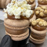 Macaroni con ganache de chocolate, con caramelo y avellanas, o palomitas saladas en glaseado de chocolate
