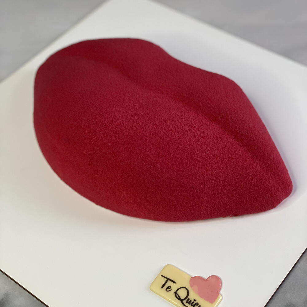 Pastel de mousse con mango / maracuyá/ coco, recubrimiento de terciopelo