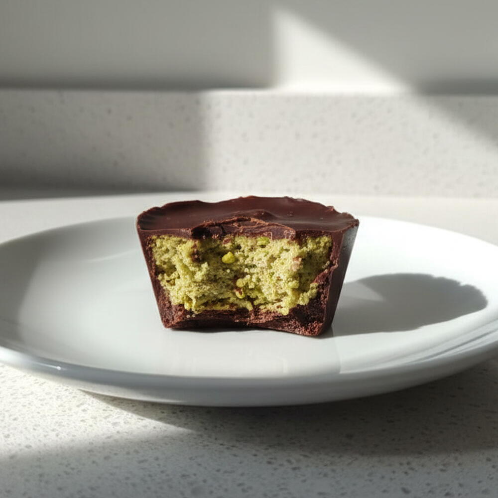 Mafins energetica con chocolate negro,crema de cacahuetes y pistachos