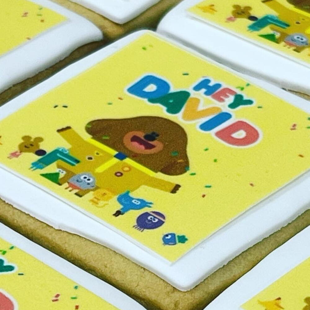 Galletas decoradas con papel de azucar ( puedes elegir el diseno que quieras )minimo 12 unidades