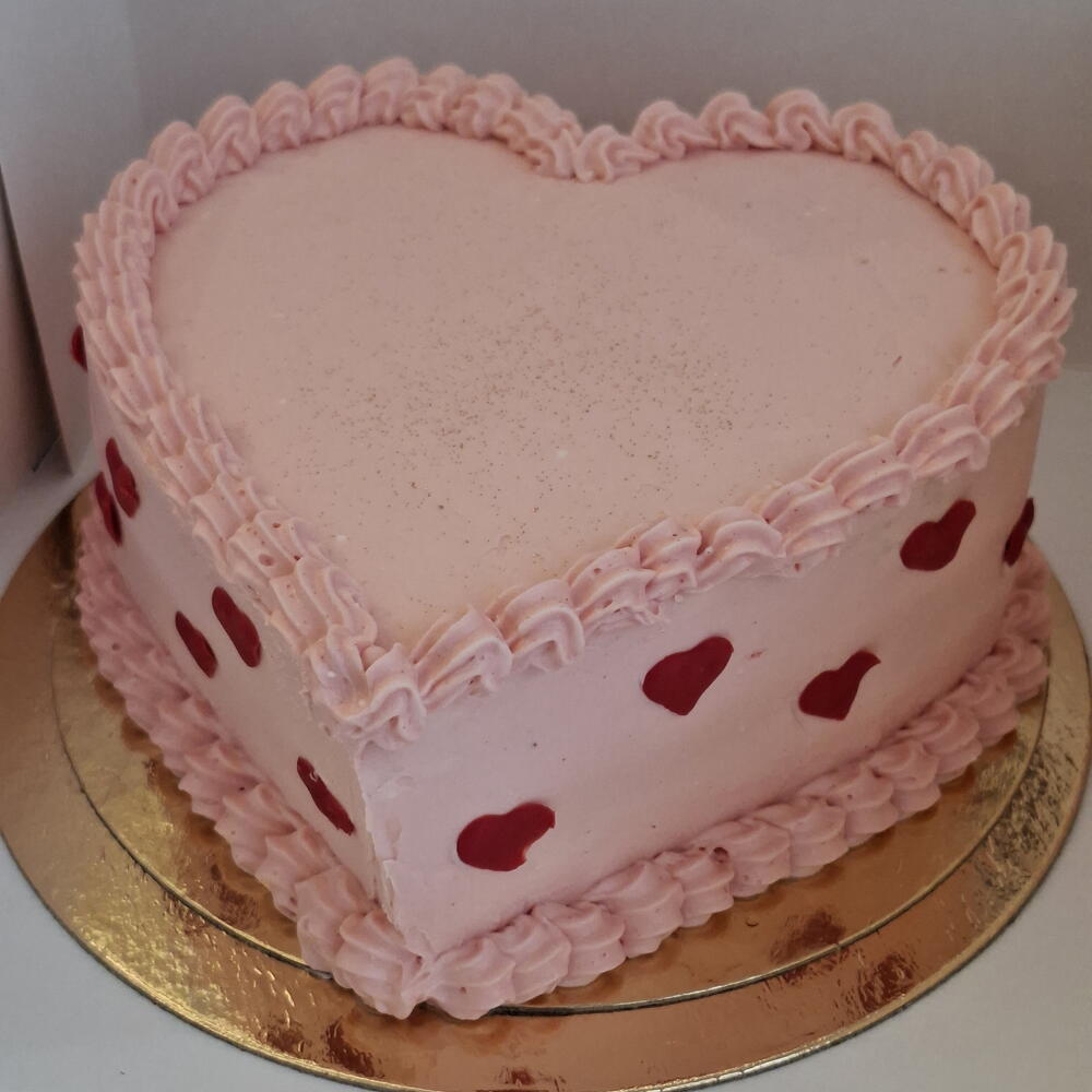 Elegante tarta en estilo clásico Lambeth, decorada con delicados detalles de crema y pequeños corazones. En su interior, un esponjoso bizcocho de vainilla empapado en almíbar, combinado con rellenos frutales: albaricoque, frambuesa, mango y plátano. El equilibrio entre dulzor y un toque ácido la hace intensa pero ligera. Perfecta para celebraciones, ocasiones especiales y momentos románticos.