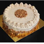 Bizcocho de vainilla relleno de crema de mantequilla praliné.Deléitate con esta deliciosa tarta, artesanalmente preparada con los más finos ingredientes: harina de calidad, azúcar, huevos frescos y cremosa mantequilla.Enriquecida con sabrosos frutos secos caramelizados como avellanas y almendras y, para un toque final verdaderamente lujoso, adornada de crema de mantequilla praliné. Una auténtica indulgencia apta para los paladares más exigentes.