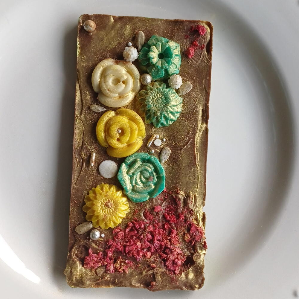 🌸 Tableta artesanal decorada con flores – Edición especial 🌸 Delicada tableta de chocolate artesanal decorada a mano con elegantes flores en relieve y detalles florales deshidratados. Una combinación perfecta entre sabor y diseño, ideal para regalar en ocasiones especiales como cumpleaños, Día de la Madre o simplemente para sorprender. ✨ Elaborada con chocolate de alta calidad ✨ Decoración artesanal pintada a mano ✨ Presentación individual en bolsa transparente con sello Un detalle sofisticado que enamora a primera vista y conquista con su sabor.