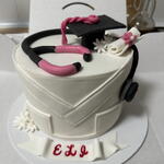 Tarta decorada con lazo de fondant y buttercream de vainilla y puedes elegir el sabor y relleno lo que quieras. Es una tarta para 8 a 10 personas. Harina de trigo, azúcar, mantequilla, aceite de girasol, huevos, leche, chocolate.