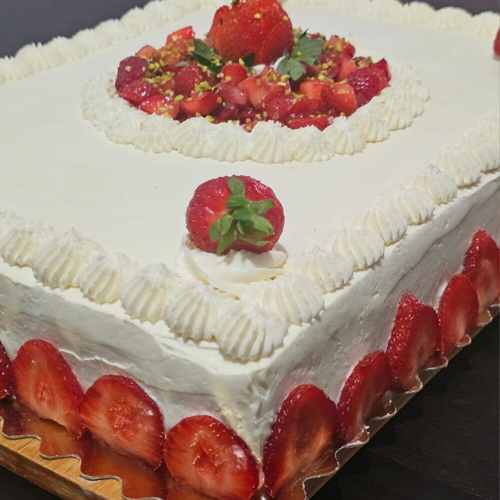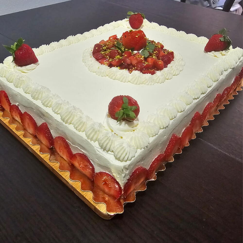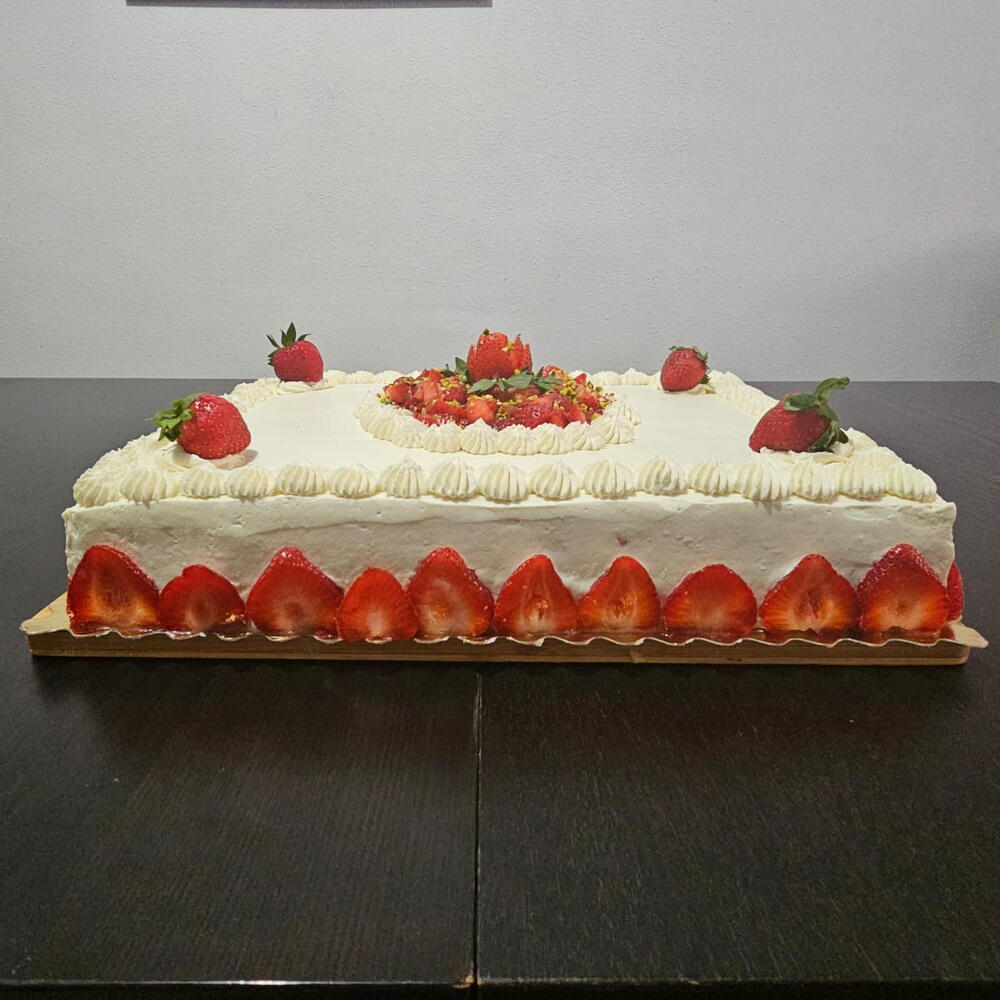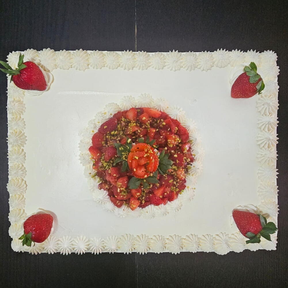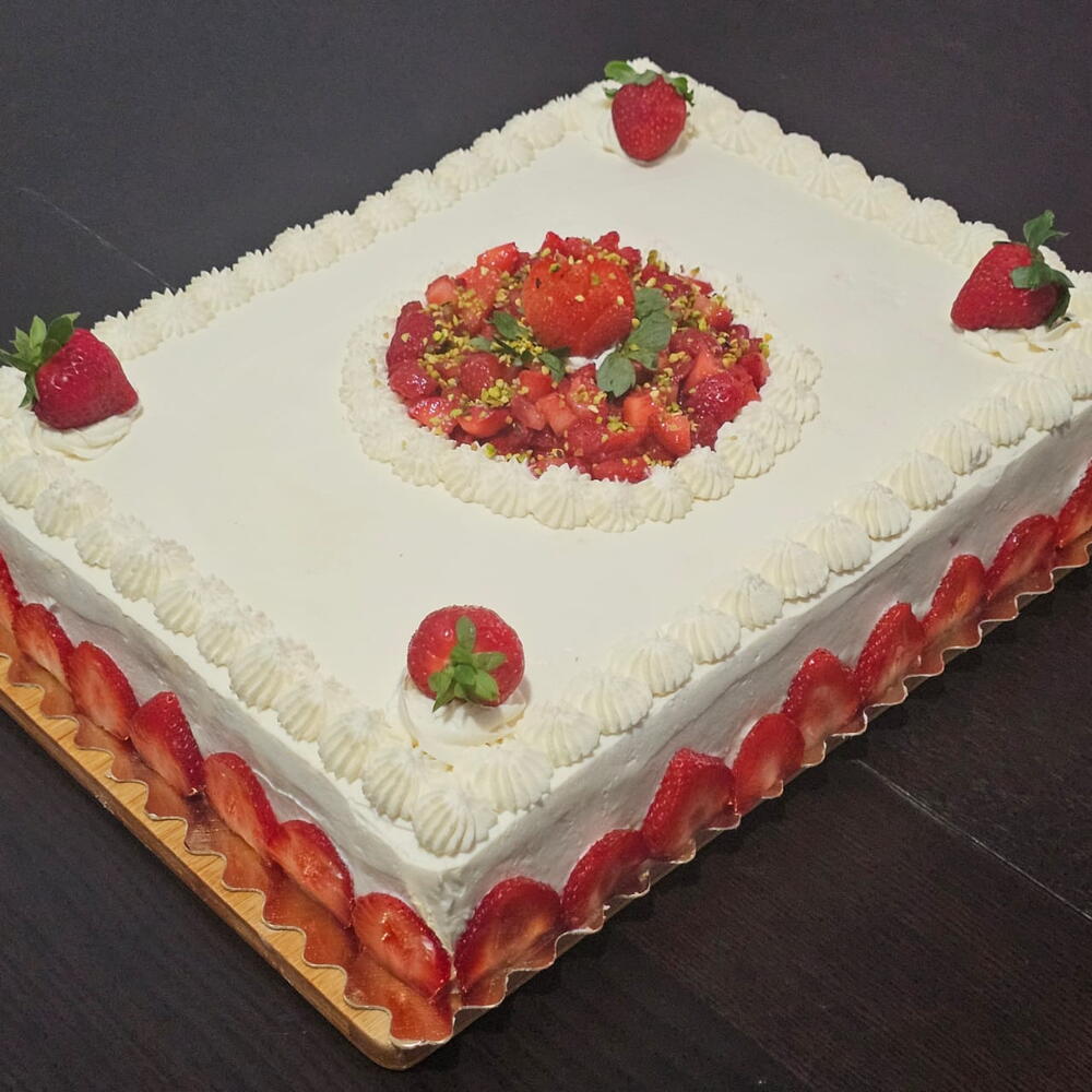Disfrute de la exquisitez de nuestras tartas hechas con ingredientes frescos y de primera calidad. Están elaboradas con una suave y esponjosa base de harina, delicadamente endulzadas con azúcar y enriquecidas con huevos frescos. Pero lo que las hace realmente especiales es la cremosa y suave capa de crema chantillí,queso mascarpone y queso para untar, que le da a cada bocado un sabor inigualable. Como toque final, añadimos fresas frescas y jugosas en la parte superior para un regusto dulce y ácido que equilibra perfectamente la riqueza del queso. Esta tarta es una auténtica delicia que te hará volver por más.