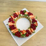 Tarta tipo medovik abierta con finas y suaves capas de masa de miel, intercaladas con una crema suave y cremosa. La tarta se decora con frutos rojos frescos, que aportan frescura y un equilibrio perfecto entre dulzor y acidez. Los delicados capas de masa de miel hacen que la textura sea muy tierna, jugosa y aromática, con un ligero sabor a miel. Presentación elegante en forma redonda.
