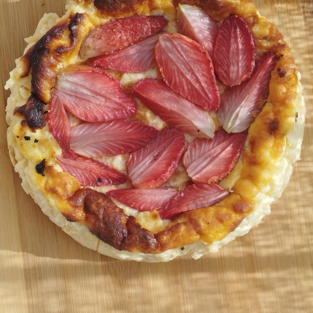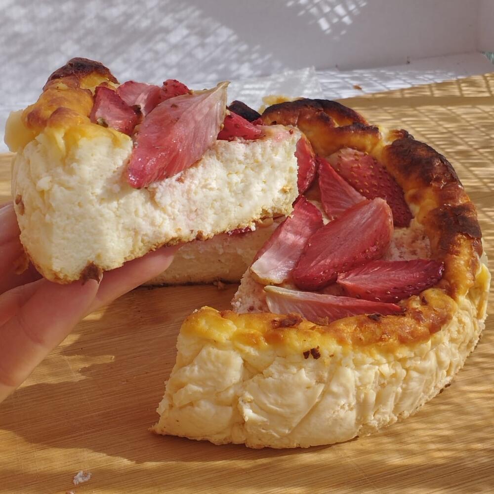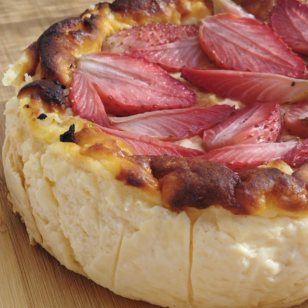 Tarta de queso estilo San Sebastián con un toque gourmet: este cheesecake conserva la esencia cremosa característica, pero se enriquece con mascarpone incorporado a la base de queso, logrando una textura aún más aterciopelada y un sabor delicadamente lácteo. Su corazón es suave y fundente, con notas de vainilla que realzan el dulzor natural. La superficie, horneada a alta temperatura, desarrolla el clásico color tostado del San Sebastián, pero en esta versión se añade una capa de fresas horneadas, que liberan su jugo caramelizado durante la cocción, aportando frescura y un contraste frutal vibrante. El resultado es un postre elegante: cremoso por dentro, aromático y ligeramente ácido por la fruta en la cubierta, ideal para quienes buscan una experiencia intensa y equilibrada entre queso, mascarpone y fresas asadas. Tarta San Sebastián Clásica con Fresas La tarta San Sebastián clásica con fresas es un regalo original ideal para cumpleaños, San Valentín, Reyes, bodas o el Día del Padre. Elaborada en una pastelería en Barcelona, esta tarta de queso vasco combina mascarpone o Philadelphia en una textura cremosa, sin leche condensada ni cuajada, con una base crujiente y un topping de fresas frescas. Con unos 600 gramos, es perfecta para 4-6 personas. Ideal para mi amiga, mi novio, papá, un hombre o una mujer embarazada, su estilo inspirado en La Viña la hace uno de los mejores regalos. Encárgala mediante catering en Barcelona o en una tienda online para un regalo que combina autenticidad y dulzura.