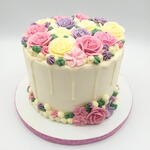 Tarta de 15 raciones, decorada con flores de crema hecha a mano ideal para los amantes de las flores.
