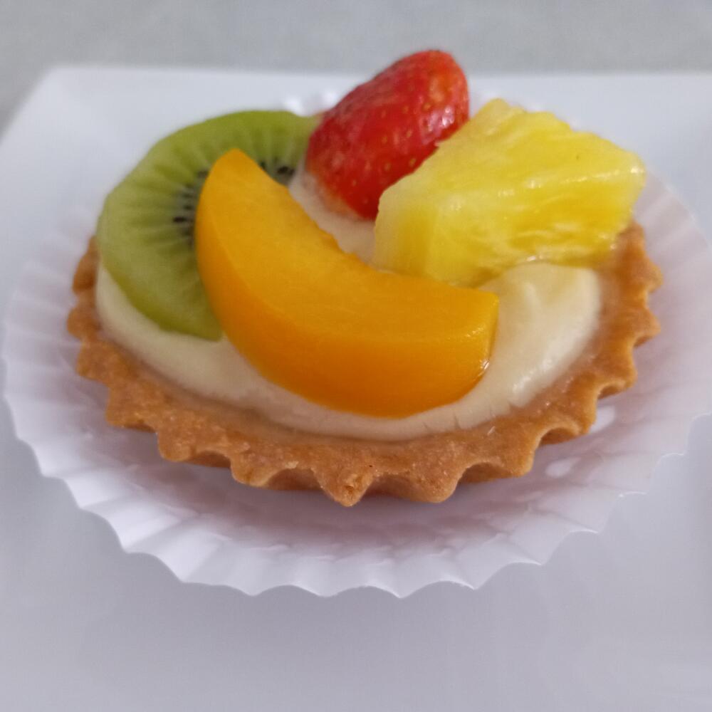 Esta deliciosa tartaleta casera está elaborada con una selección de ingredientes de alta calidad. La base es una mezcla perfecta de harina, azúcar y mantequilla, almendras a lo que se añaden huevos darle una textura suave. Una crema pastelera con un toque sutil de extracto de vainilla realza los sabores naturales de la tarta . Pero la verdadera estrella son las frutas frescas que adornan la tarta: fresas, kiwi, piña y melocotón, que aportan un toque jugoso y fresco. Cada bocado es una delicia llena de sabor y dulzura. ¡Disfrútala en cualquier ocasión o regála a tus seres queridos