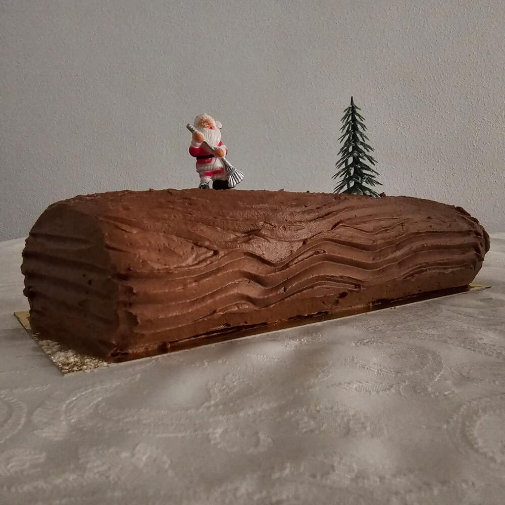 Deléite con nuestros troncos navidenos que no pueden faltar en una velada de noche buena,hechos de ingredientes de primera calidad como los huevos frescos.Un bizcocho de chocolate, relleno con una deliciosa ganache montada de chocolate.Una explosion de sabor en cada bocado para los amantes del chocolate!