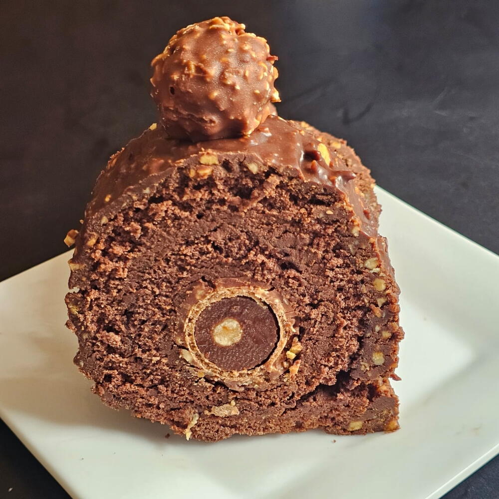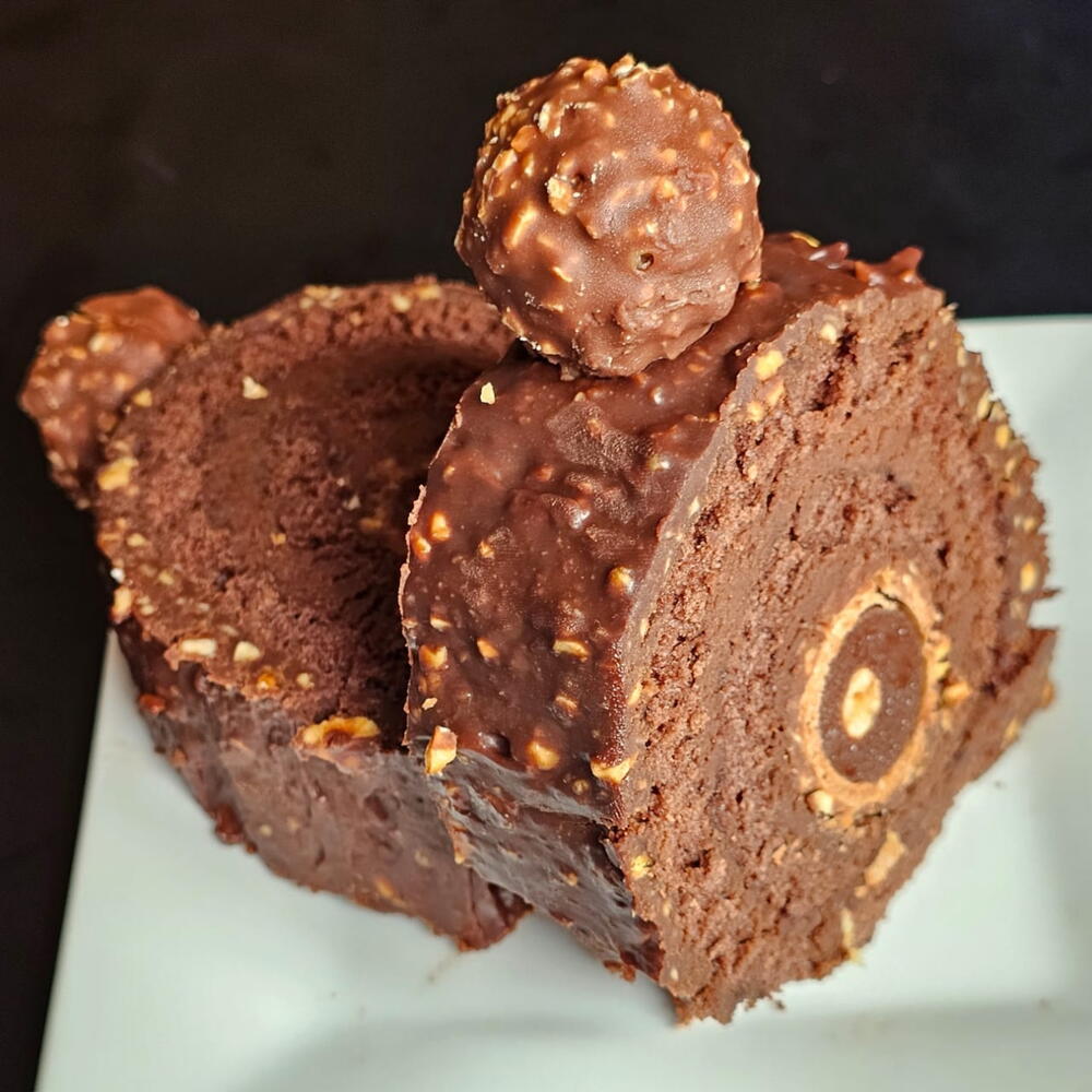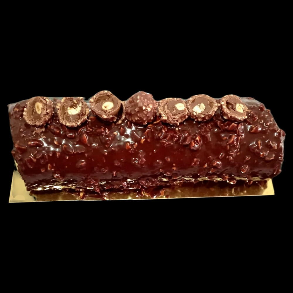 Deléite con nuestros troncos navidenos hechos de ingredientes de primera calidad! Un bizcocho geneovés al chocolate relleno de crema chantilli al chocolate y de bonbones Ferrero Rocher, le da a este tronco un sabor exquisito para los amantes de chocolate. Los bonbones Ferrero Rocher realzan el sabor a cada bocado! y las avellanas aportan un croquanti estupendo. No te pierdes la oportunidad de complacer a tus seres queridos con este postre navideno!!!