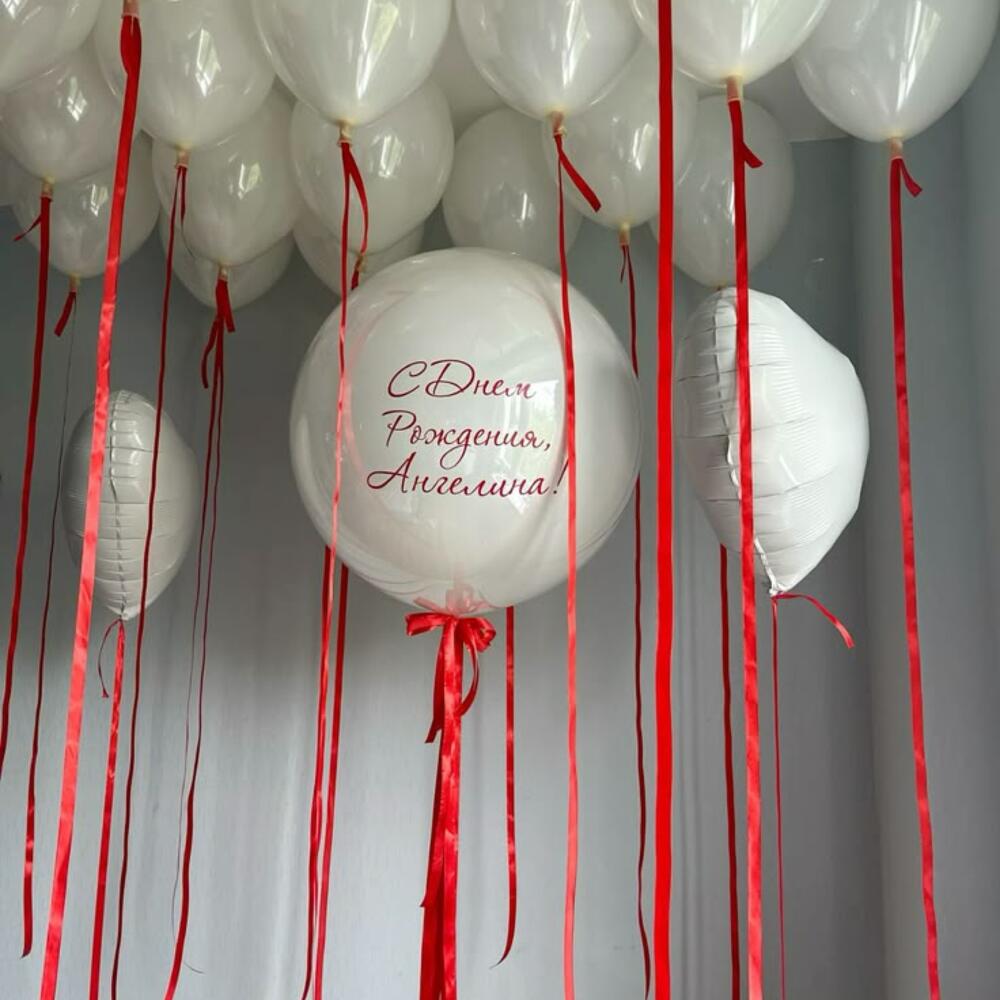 Una composición sofisticada de globos, donde los globos blancos transmiten ligereza y pureza, mientras que las cintas rojas contrastantes añaden pasión y dinamismo. Esta armonía de opuestos hace que la decoración sea impactante e inolvidable. 17 - blanco globos 2 - blanco globos corazon 1 - blanco globo grande 90 cm + inscripción