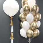 Globo gigante, tamaño 24″/60cm, color blanco - 1 ud - Globo cromado de látex, tamaño 30cm, color blanco, dorado - 25 uds - Peso - 3 uds Se puede elegir cualquier color de globos