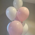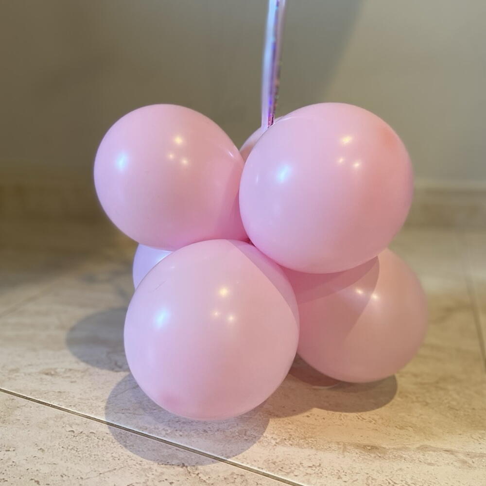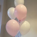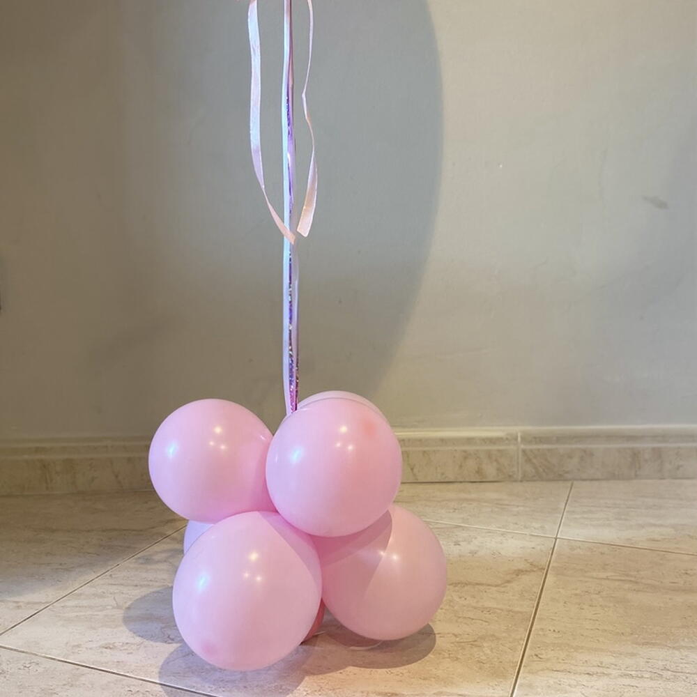 Un delicado conjunto de 7 globos rosas y blancos con pesas.