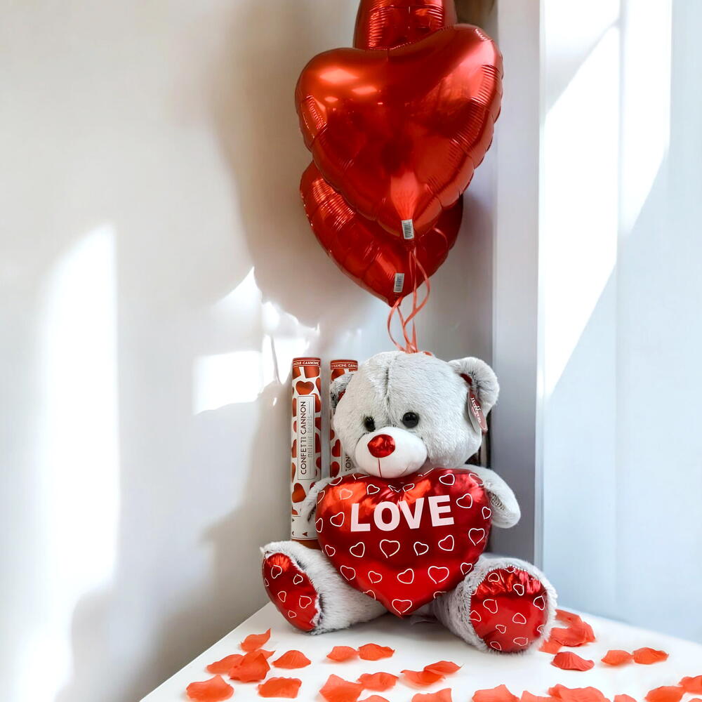 Elegante oso amoroso con 3 corazones rojos