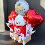 Sorprende a lo grande con nuestro arreglo “Oso Happy Birthday”, una encantadora composición ideal para cumpleaños, perfecta para enamorados. Este diseño especial incluye un oso de peluche de 45 cm con un corazón bordado, acompañado de una elegante canasta decorativa repleta de detalles. Cuenta con 4 globos foil (2 en forma de corazón, 1 circular con el mensaje Feliz Cumpleaños y 1 estrella), así como mariposas decorativas de plástico y papel seda que dan un toque mágico al conjunto. Una opción ideal para expresar amor y buenos deseos de una manera original, colorida y llena de ternura. Recomendaciones de cuidado: Mantén la canasta en un lugar fresco, lejos del sol directo y del calor para preservar la forma del peluche y los globos. Evita la humedad excesiva para mantener la decoración de papel en buen estado. Ideal para regalar directamente o colocar como centro de mesa en una celebración especial.