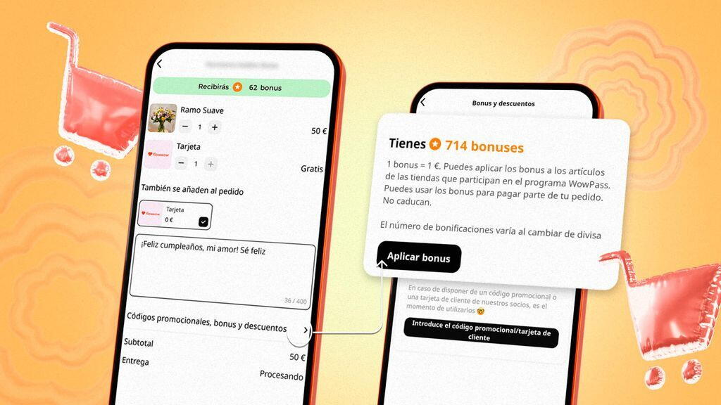 ¿Planeas hacer un pedido en Flowwow? ¡No olvides el código promocional! Casi cada compra con nosotros resulta aún más agradable gracias a los códigos para primeros pedidos, los cupones exclusivos y los prácticos bonus. Explicaremos cómo ahorrar con Flowwow: códigos para clientes habituales, el programa de fidelidad, descuentos para el primer pedido y trucos sencillos que se traducen en buenas ofertas.