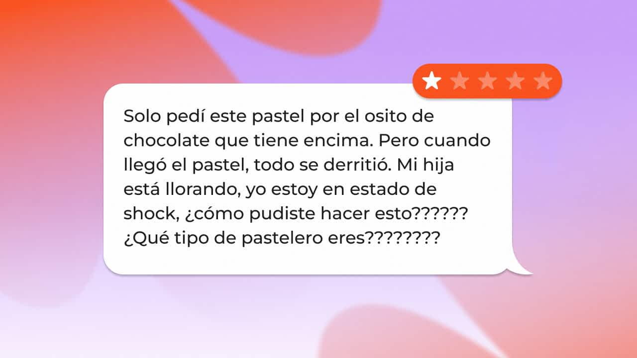 La razón principal de un comentario negativo son las expectativas que no coinciden. Por ejemplo, cuando el cliente vio la foto, tuvo la impresión de que el ramo era enorme y bonito, pero recibió una composición de tamaño mediano.