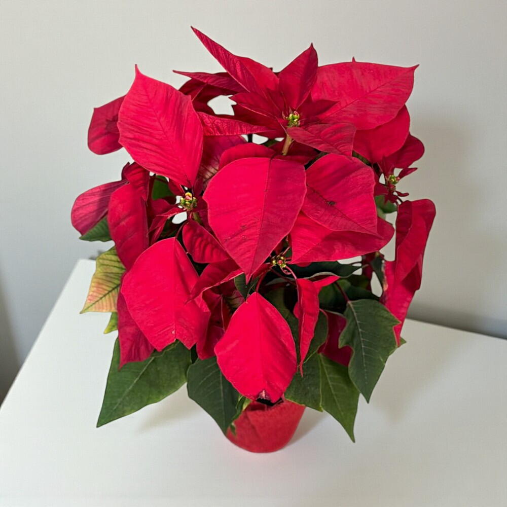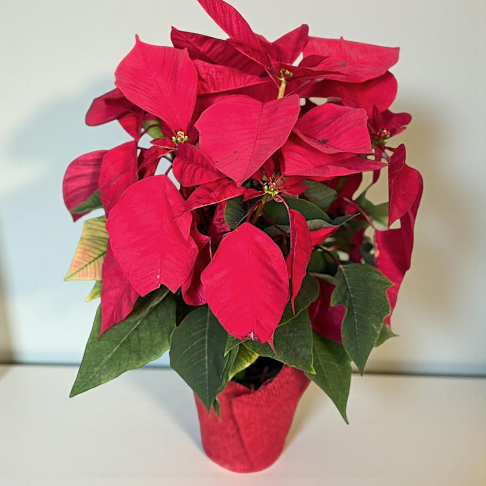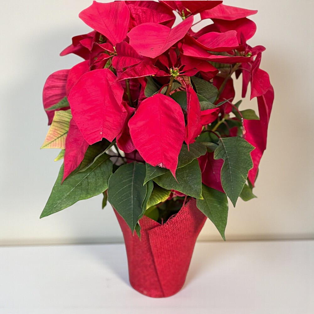 Este elegante poinsettia rojo ilumina cualquier espacio con su vibrante color festivo y su porte majestuoso. Su follaje intenso y brillante convierte esta planta en un símbolo perfecto de calidez, alegría y celebración. Ideal para decorar hogares, oficinas o para regalar en ocasiones especiales, aporta un toque navideño clásico que nunca pasa de moda.