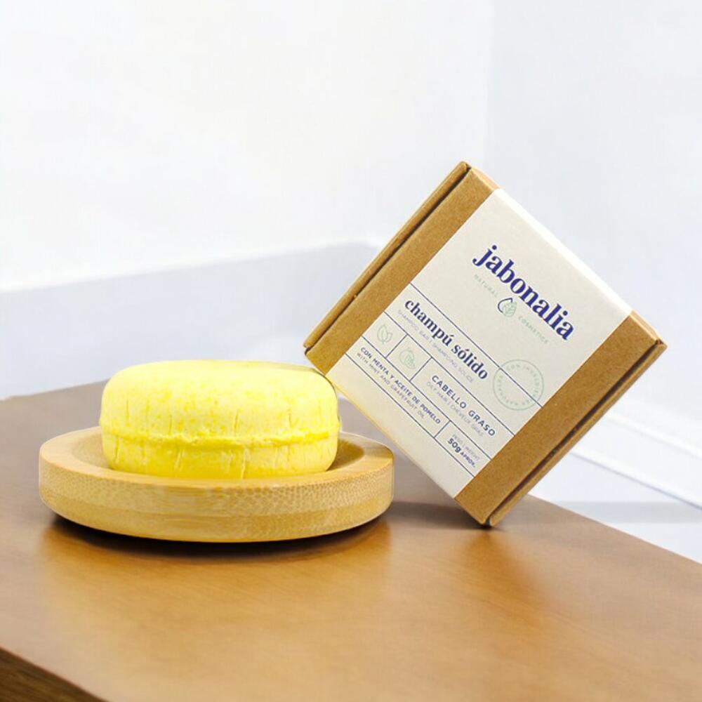 Champú sólido natural de Jabonalia diseñado específicamente para cabello graso. Contiene menta, que ayuda a purificar, fortalecer y tonificar el cabello, previniendo su caída. Además, su principal ingrediente, el aceite esencial de pomelo, es conocido por sus propiedades seborreguladoras, lo que lo convierte en el champú ideal para combatir el exceso de grasa en el cabello. No contiene sulfatos ni parabenos químicos. Ideal para mantener tu cabello limpio y equilibrado. Con aceite esencial de menta y pomelo para un cuidado natural y efectivo.