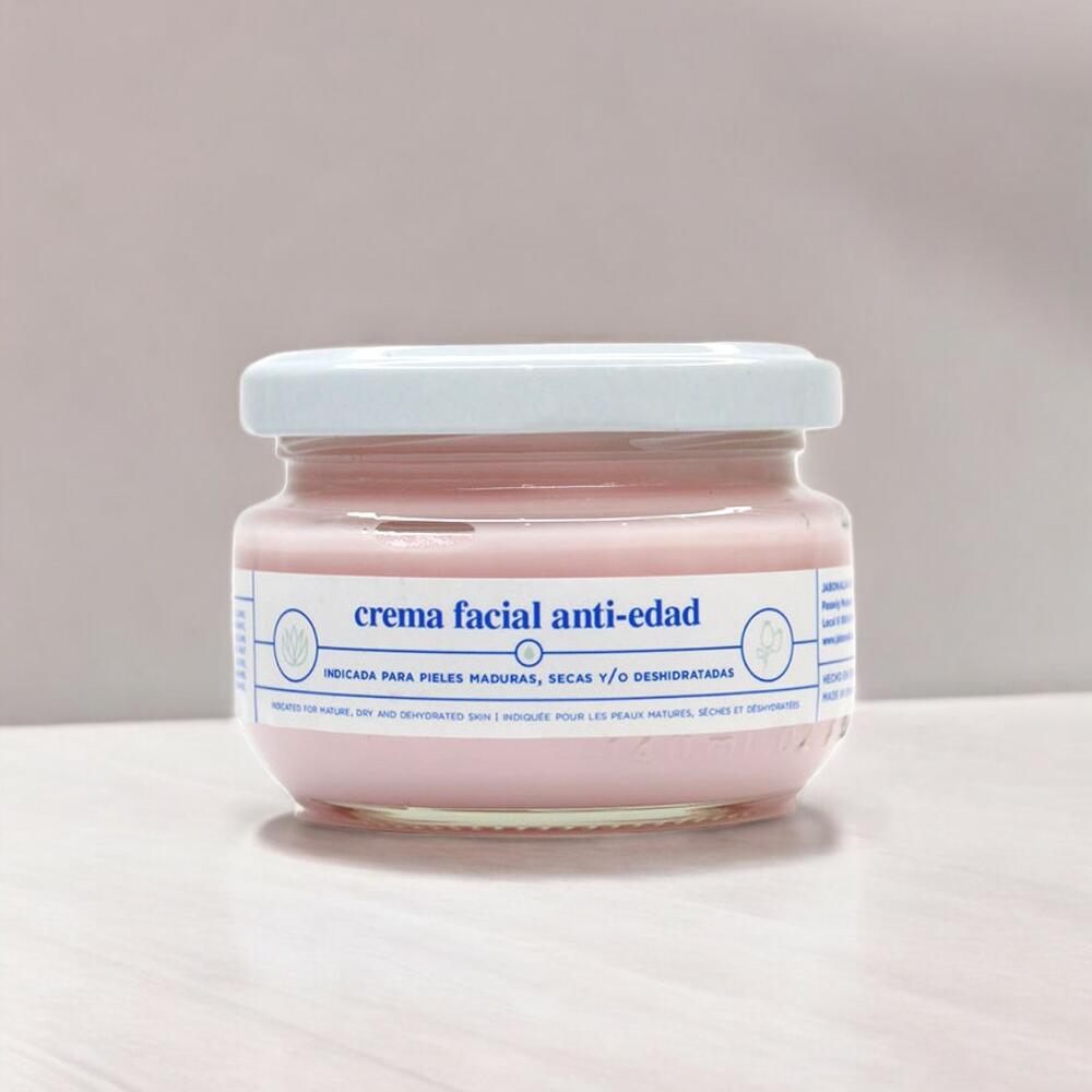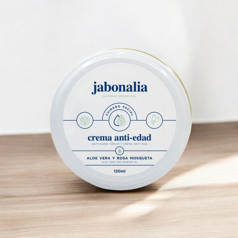 La Crema Facial Anti-Edad de Jabonalia está formulada con Aloe Vera y Rosa Mosqueta de origen ecológico, dos ingredientes altamente reconocidos en la cosmética natural por sus innumerables beneficios para la piel. Su fórmula está especialmente diseñada para tratar pieles maduras, secas y/o deshidratadas, aportando hidratación, nutrición y regeneración intensiva. Gracias a la combinación de antioxidantes, alantoína y glicosaminoglicanos, esta crema estimula la producción de colágeno y elastina, reduciendo los signos visibles del envejecimiento, como las arrugas y líneas de expresión. Ideal para aportar elasticidad y firmeza, dejando la piel luminosa, hidratada y rejuvenecida. ¡Descubre una piel más joven y radiante con esta crema facial natural y ecológica! Ideal para quienes buscan productos sostenibles y efectivos para el cuidado facial.