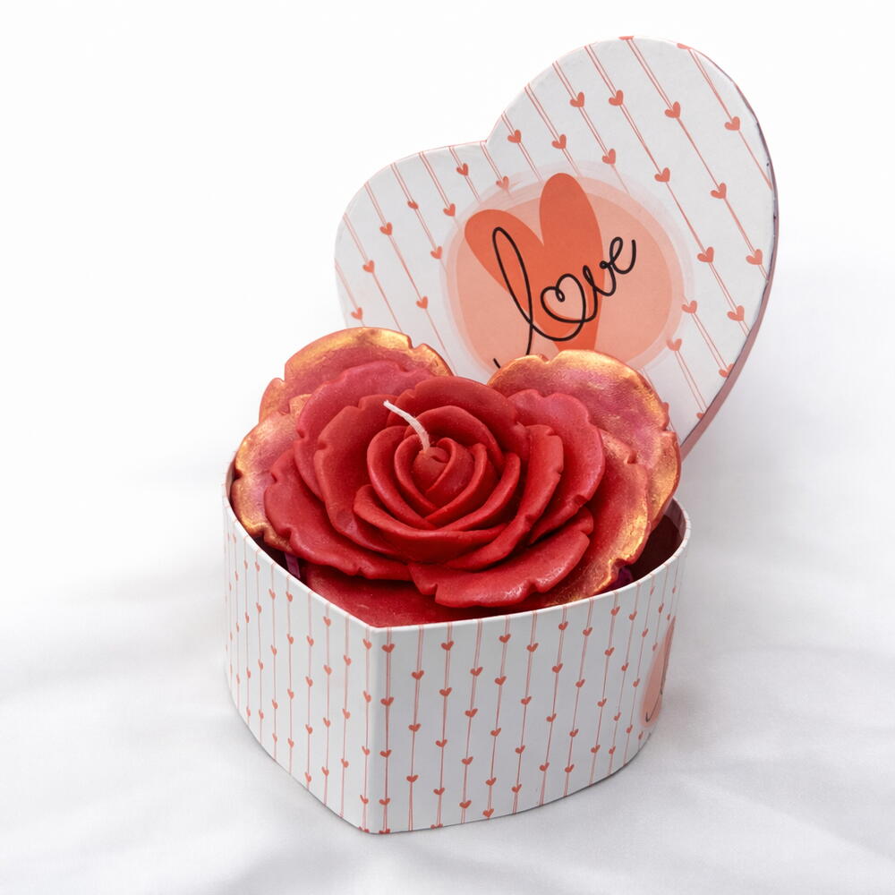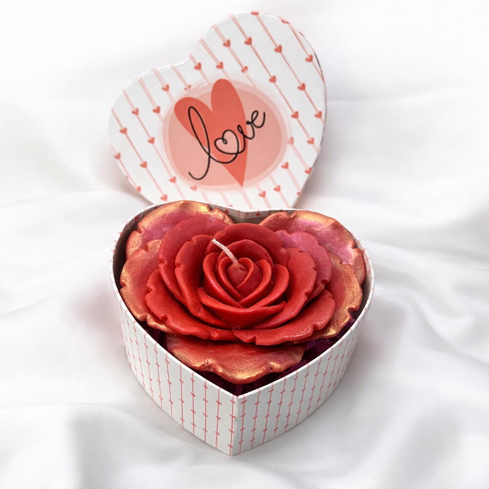 Centro floral de cera con una flor grande, presentado en caja corazón. Un detalle romántico, elegante y duradero para decir “te elijo” de forma sencilla y emotiva.