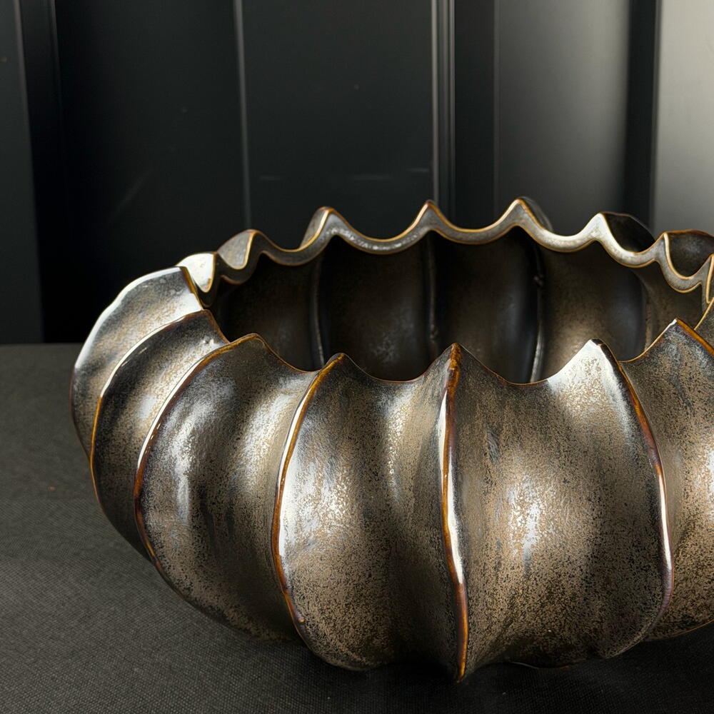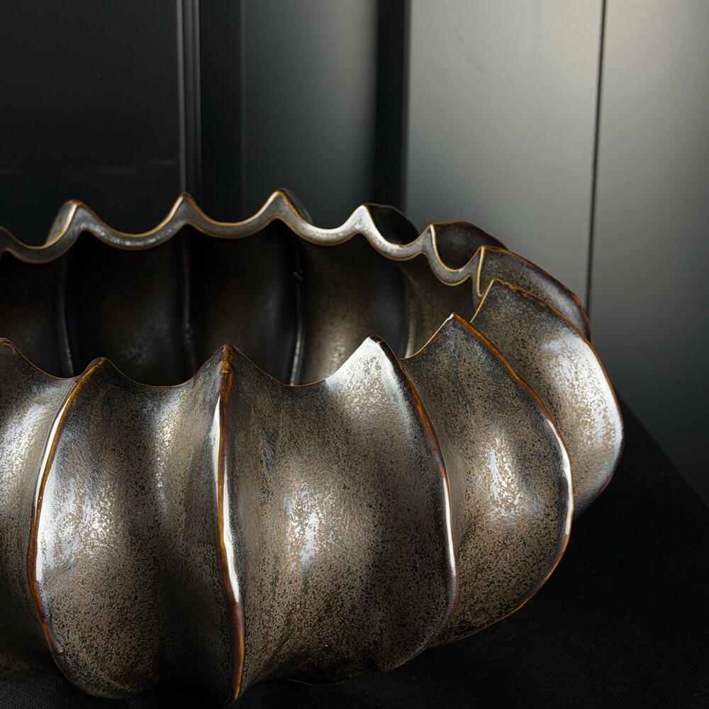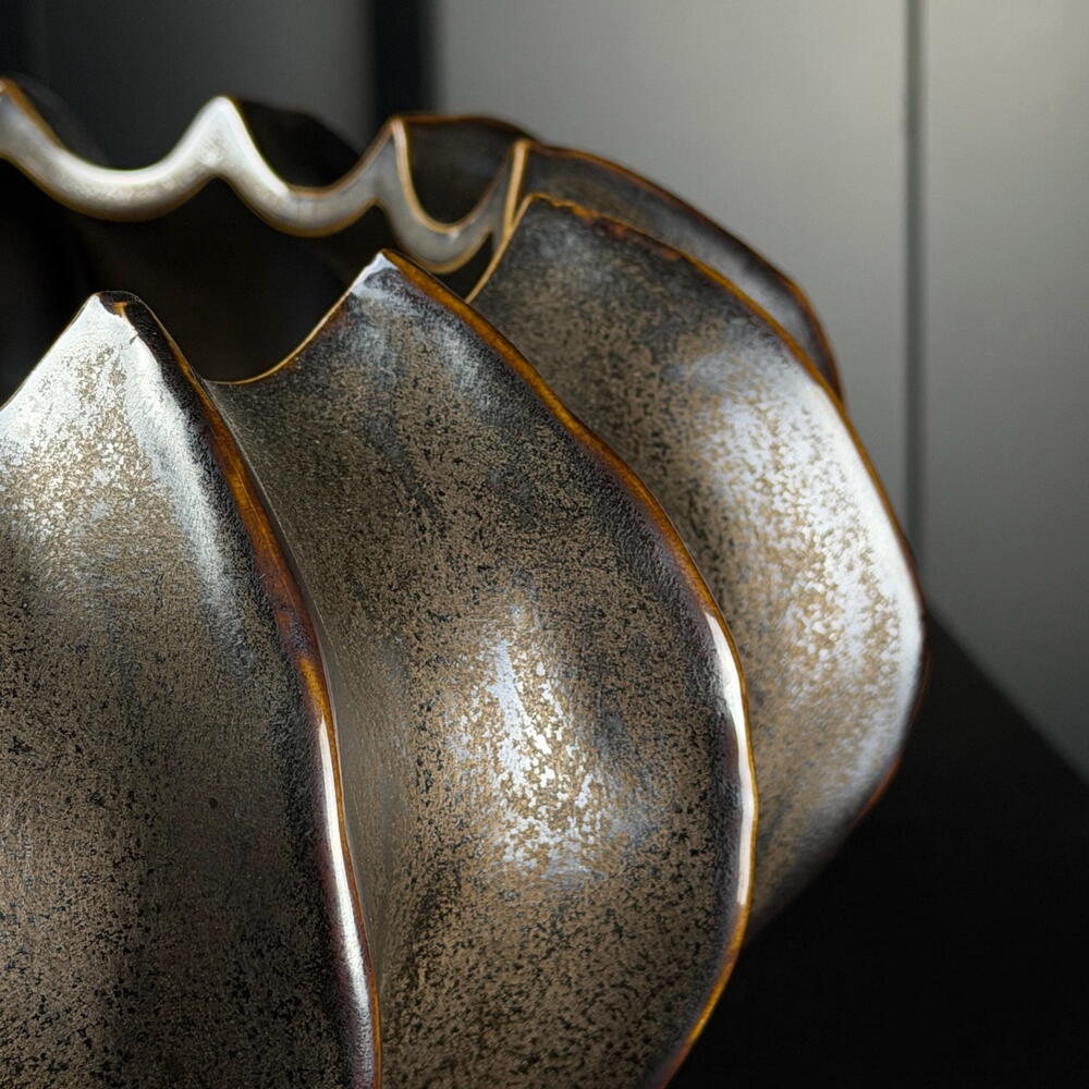 Maceta cerámica craquelada metal antracita