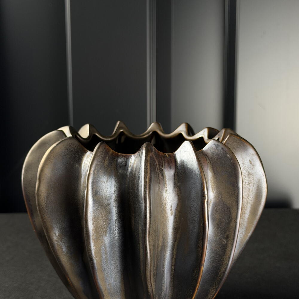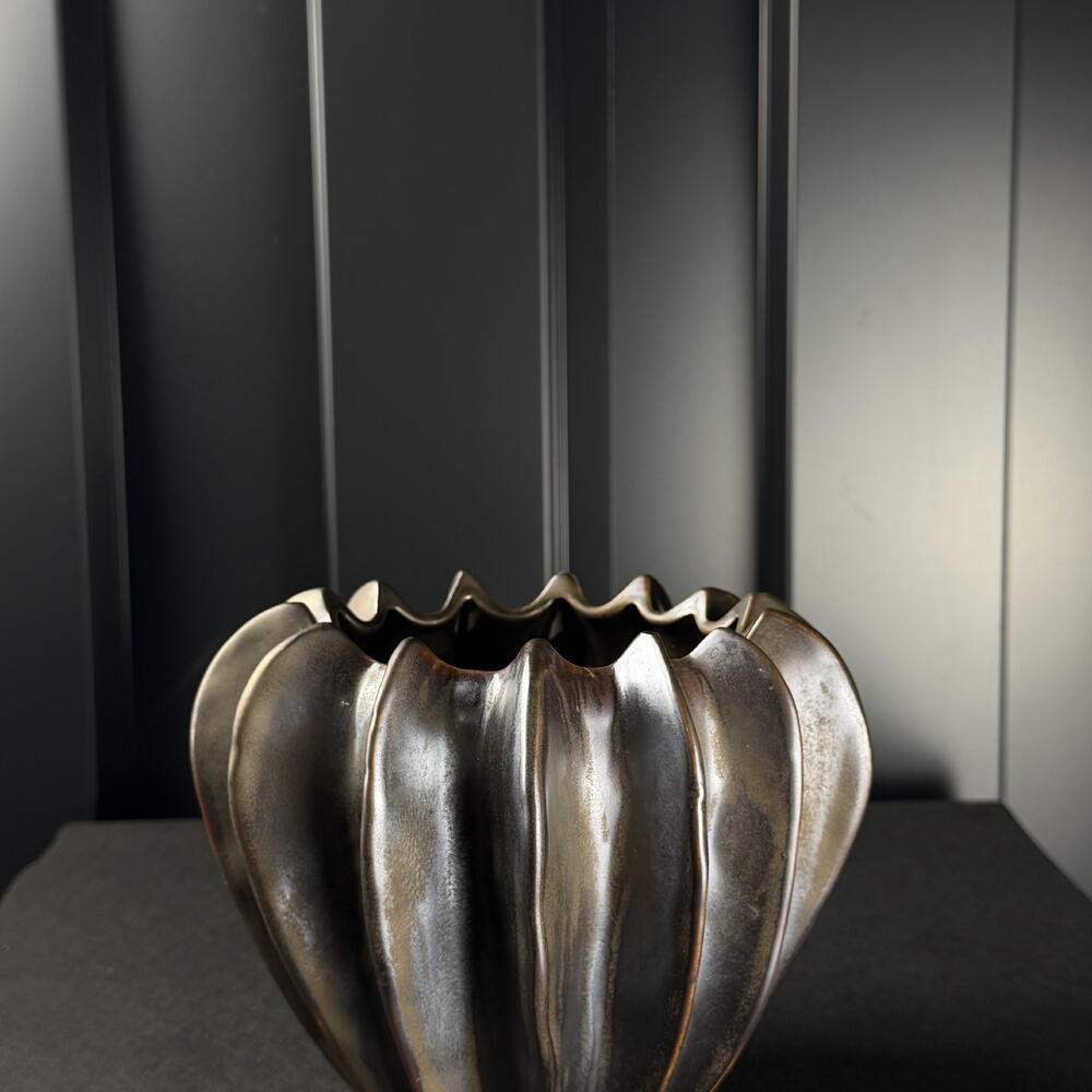 Vasija decorativa de cerámica. Diseño elegante y atemporal que se adapta a cualquier estilo de interior. Ideal para flores naturales, flores secas o como elemento decorativo por sí sola. Aporta armonía, calidez y un toque sofisticado al espacio.