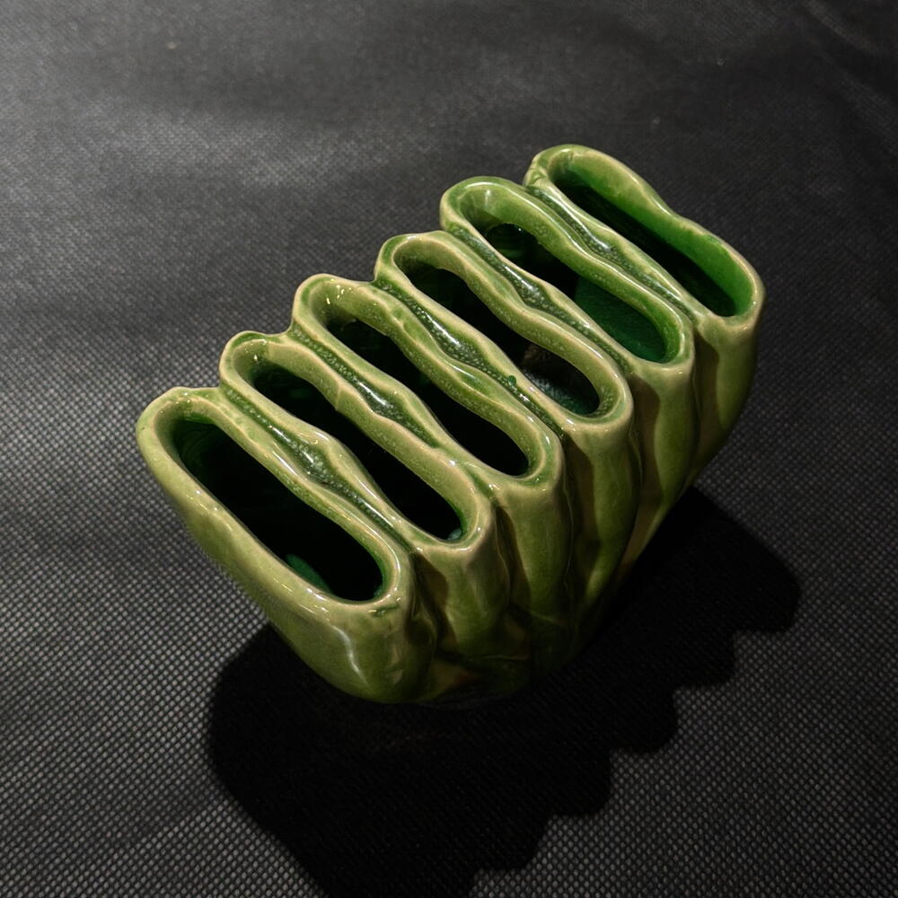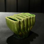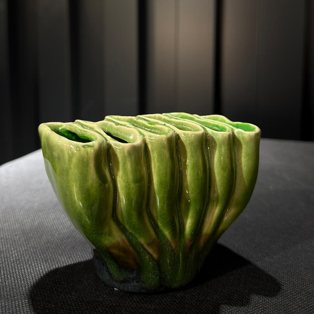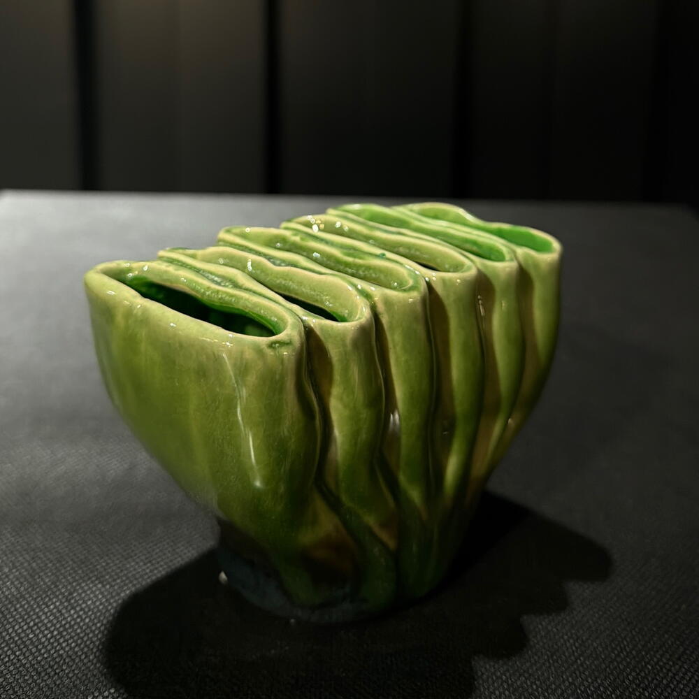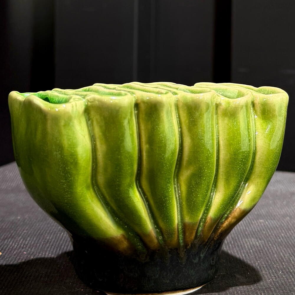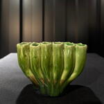 Cuenco de cerámica artesanal en verde Pieza decorativa con un diseño orgánico inspirado en formas naturales. El esmalte verde vibrante y la base oscura crean un contraste elegante. Perfecto para flores pequeñas, plantas, velas, llaves o simplemente como elemento decorativo en cualquier espacio del hogar. a.457