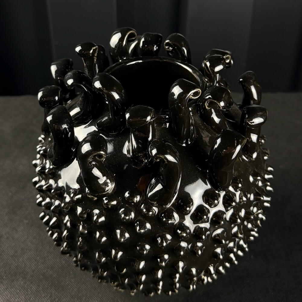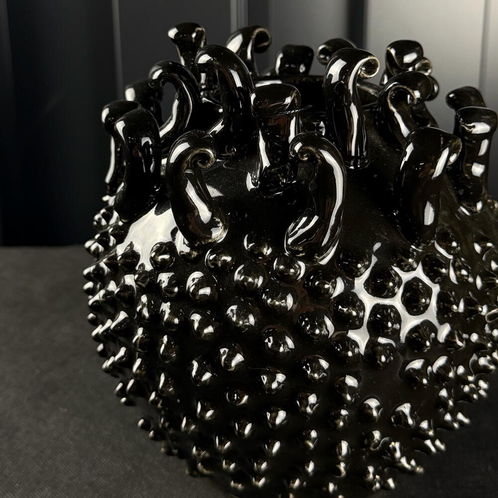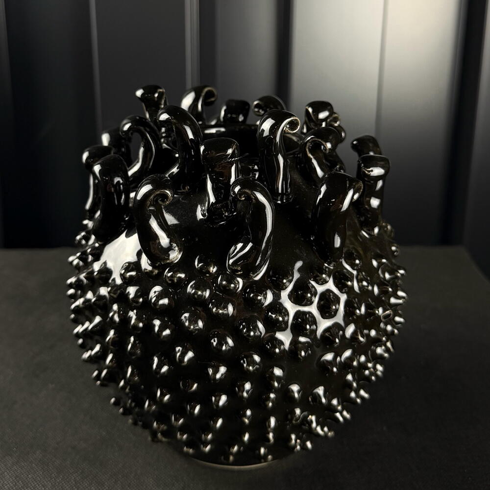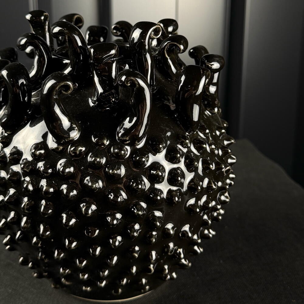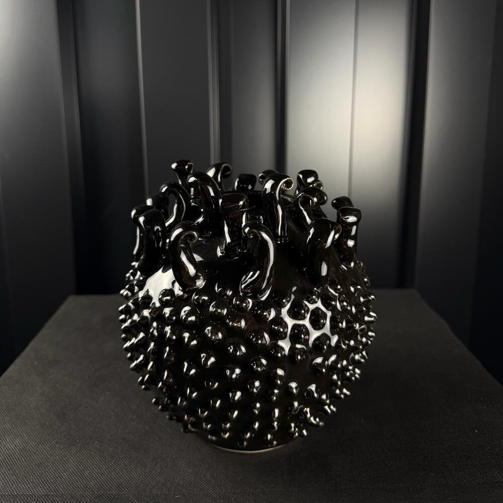 Jarrón cerámico tachonado negro brillante de ARAIK GALSTYAN