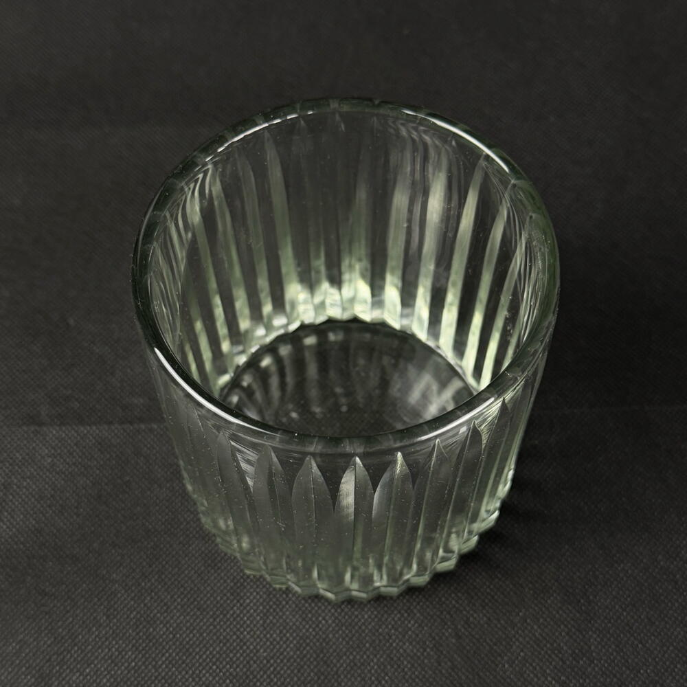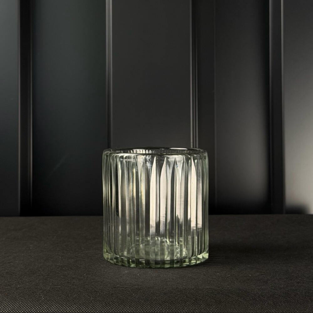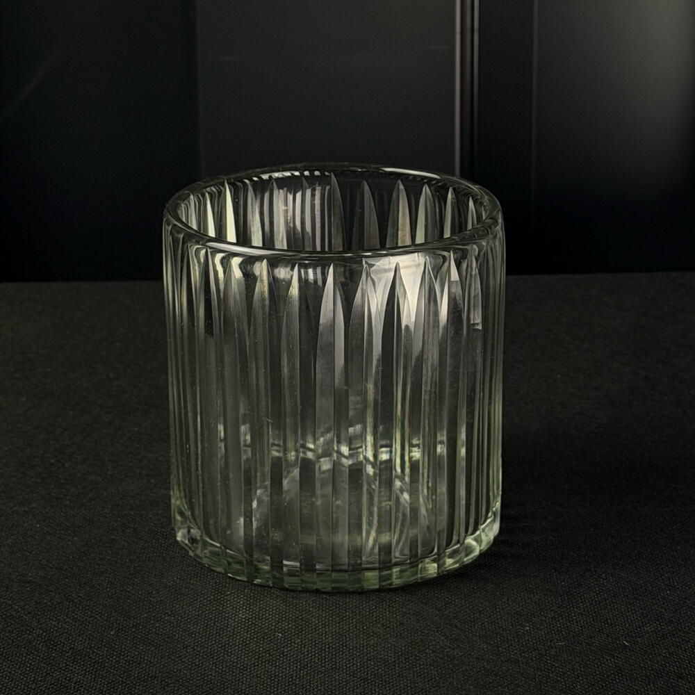 Jarrón de vidrio acanalado, elegante y sofisticado, ideal para flores, velas y decoración interior.