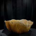 Cuenco de cerámica artesanal en tonos ámbar con borde ondulado. Pieza decorativa elegante, ideal para arreglos florales, centros de mesa o como acento en interiores modernos. a.870